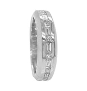 14kt white gold channel set baguette and princess cut diamond half-way band.