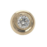14kt yellow gold bezel set IGI certified laboratory grown round brilliant diamond tie-tag.