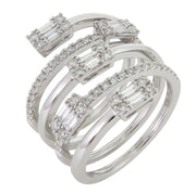 18kt white gold micro prong set baguette and round brilliant diamond multi-cluster ring.