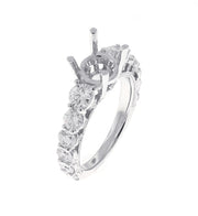 18kt white gold mutual prong set round brilliant diamond semi mount for round stone with miligrain finish and pave set round brilliant diamond on gallery.