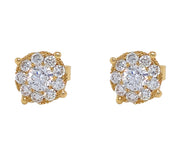 18kt yellow gold micro prong set round brilliant diamond cluster earrings.