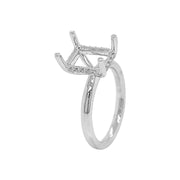 Platinum micro prong set round brilliant diamond semi-mount for emerald cut stone.