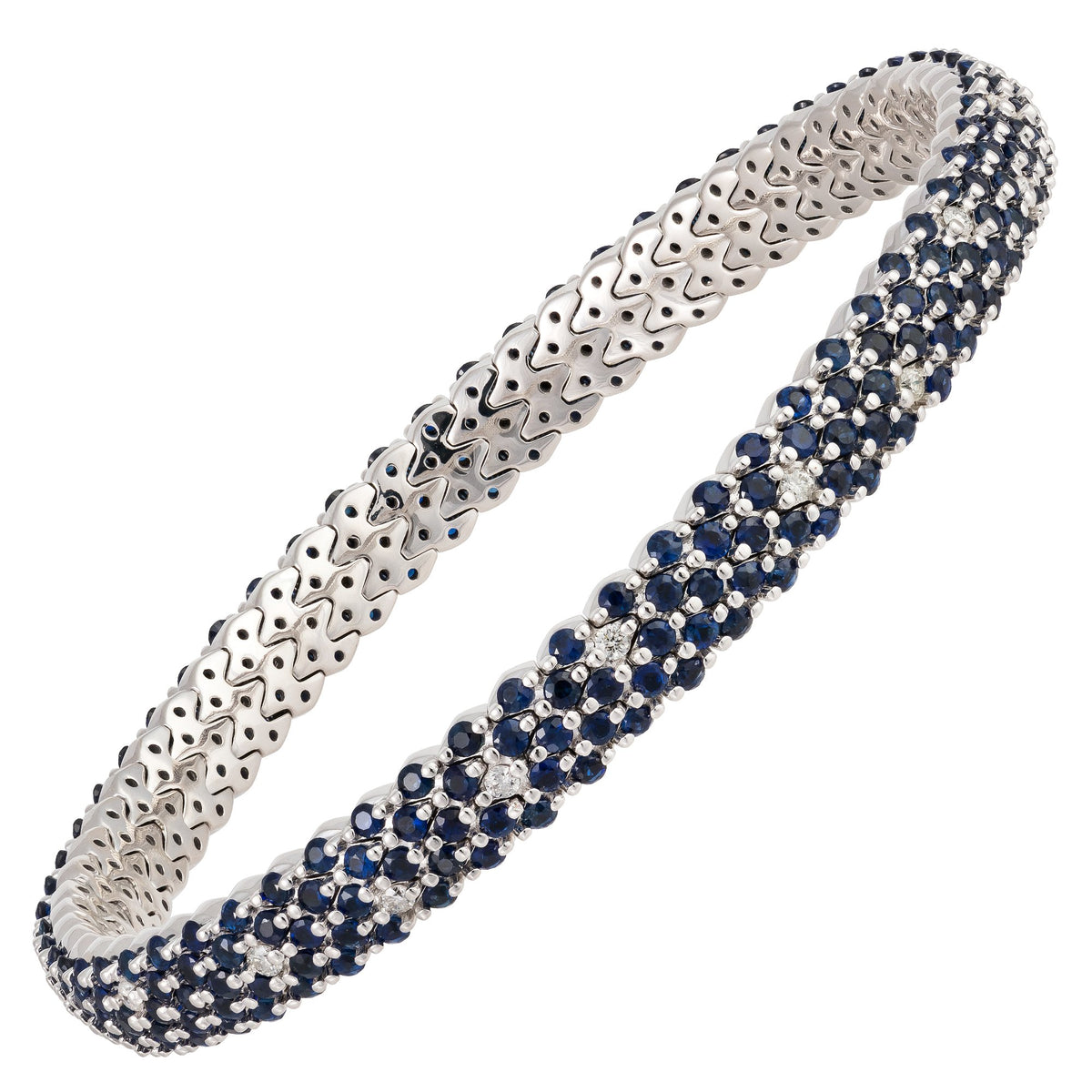 18kt White Gold Diamond and Blue Sapphire Stretchy Bangle