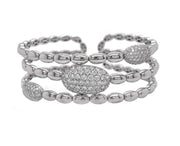 18kt white gold micro pave set round brilliant diamond multi-cluster 3 row open bangle.