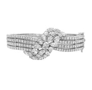 18kt white gold prong set marquise, pear, oval and round brilliant diamond wide bangle.