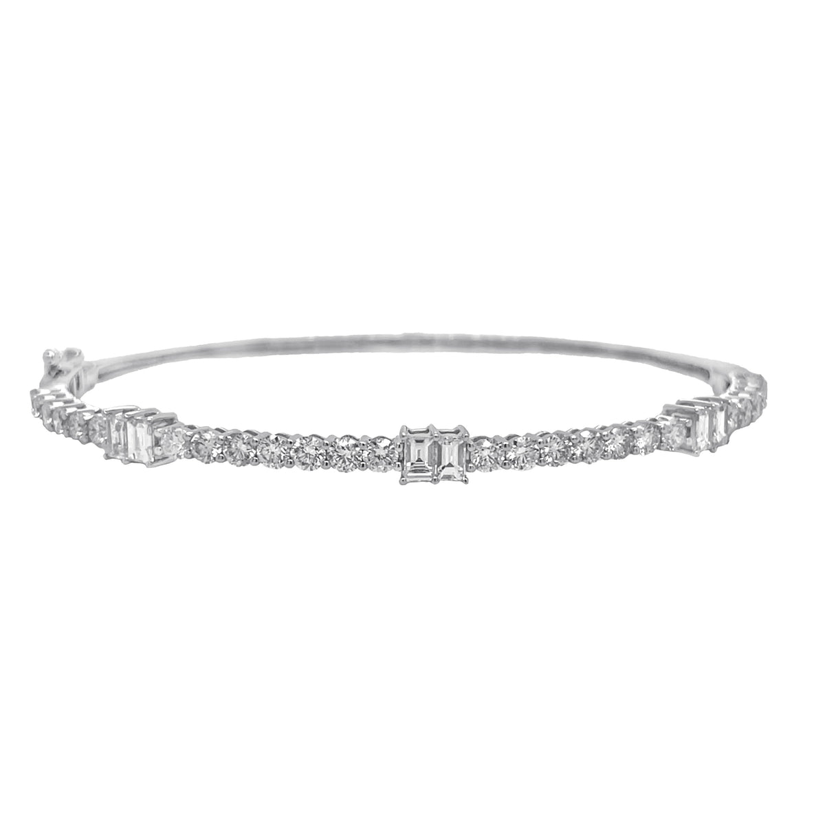 18kt white gold mutual prong set baguette and round brilliant diamond bangle.