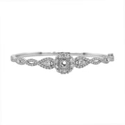 18kt white gold 4 prong mounting bangle with micro prong and prong set round brilliant diamond goes half-way around.