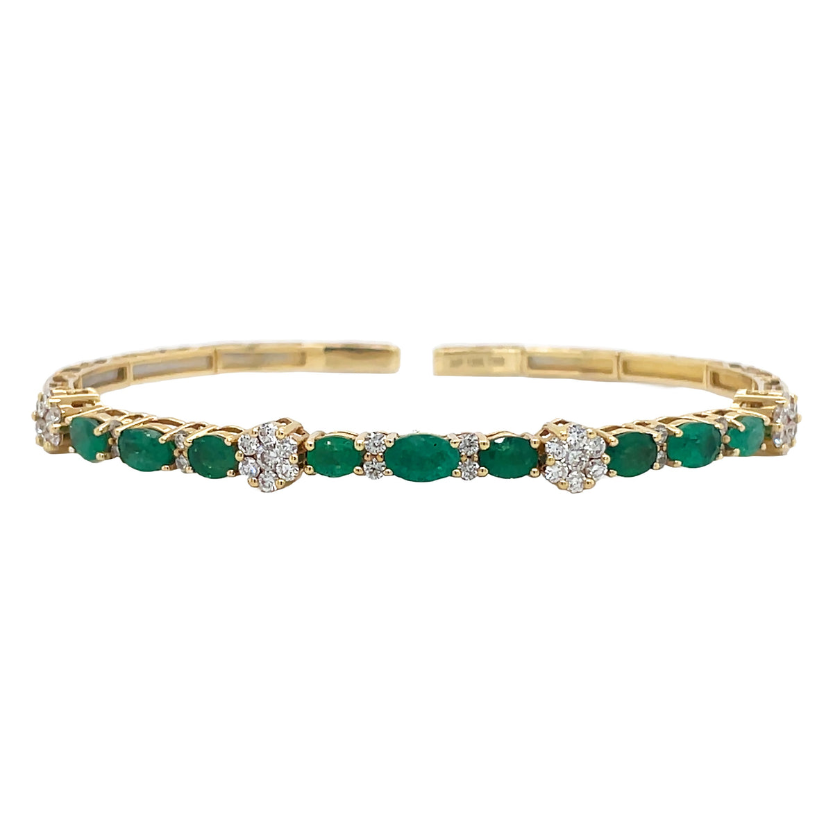 18kt Yellow Gold Diamond And Green Emerald Bangle