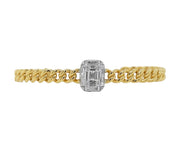 18kt yellow gold channel set baguette and round brilliant diamond link bangle.