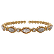 18kt yellow gold micro pave set round brilliant diamond multi-cluster bangle.