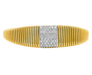 18kt yellow gold micro prong set round brilliant diamond single cluster flex bangle.