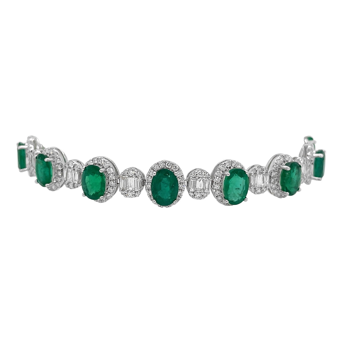 18kt White Gold Diamond and Emerald Bracelet