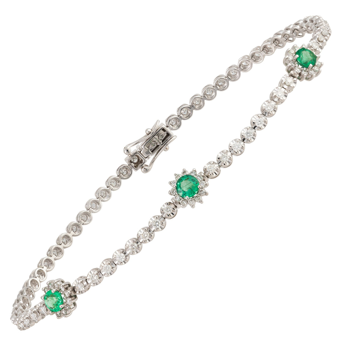 18kt White Gold Diamond and Green Emerald Tennis Bracelet