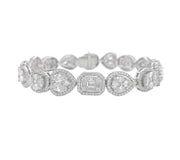 18kt white gold micro prong and invisible set marquise, pear, baguette, princess and round brilliant diamond multi-shape multi-cluster bracelet.