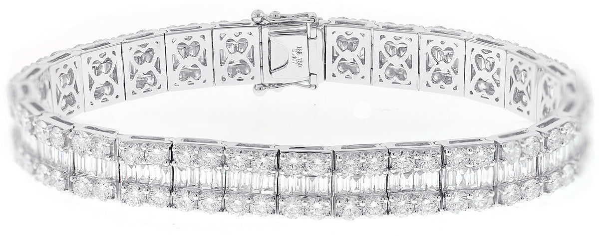 18kt white gold prong set round brilliant diamond with channel set baguette diamond bracelet