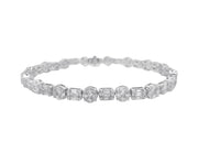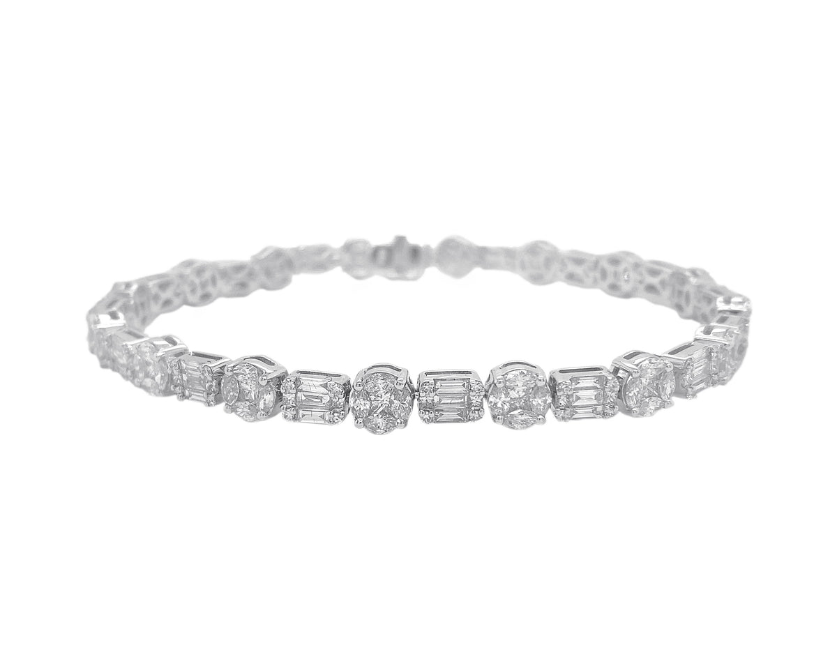 18kt white gold micro prong and invisible set baguette, princess, marquise and round brilliant diamond multi-cluster bracelet.