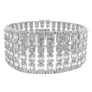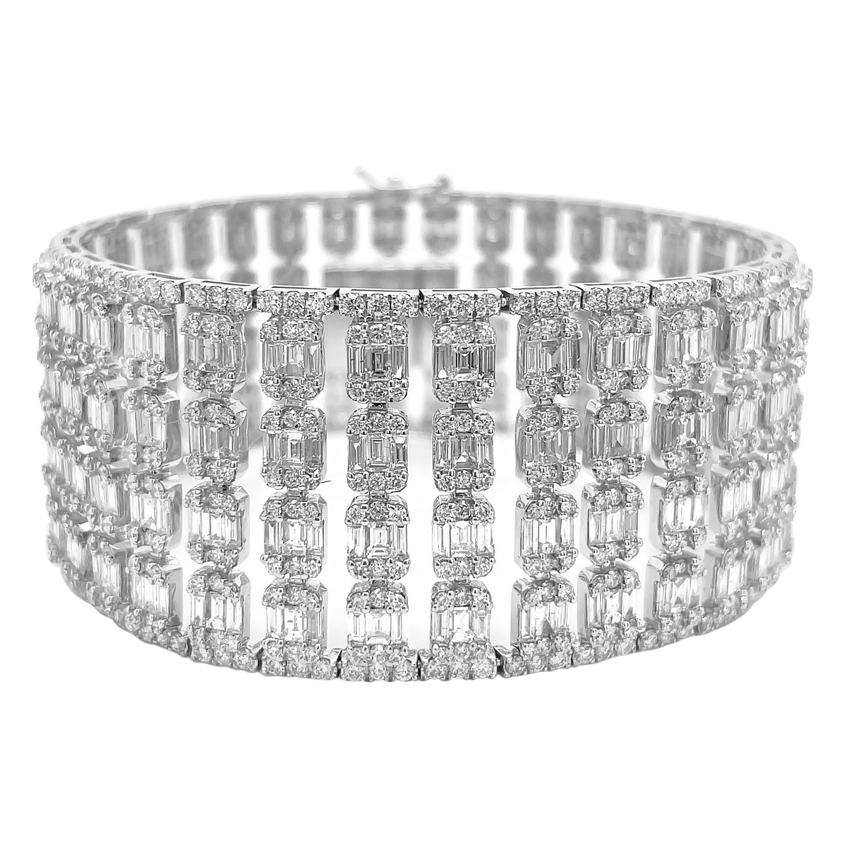18kt white gold micro prong set baguette and round brilliant diamond wide 4-row tennis bracelets.