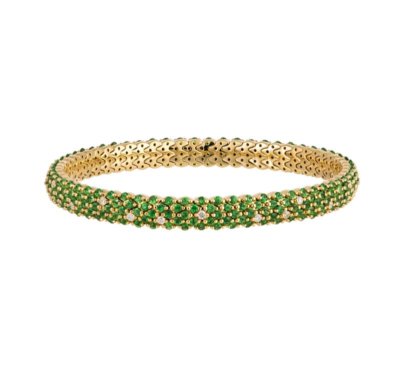 18kt Yellow Gold Diamond and Green Tsavorite Bracelet