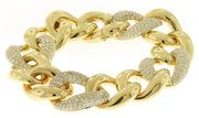 18kt yellow gold micro pave set round brilliant diamond link bracelet (alternating diamond and double gold links).