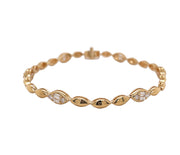 18kt yellow gold prong set baguette and round brilliant diamond multi-cluster bracelet.