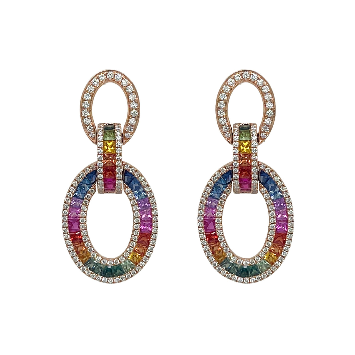 18kt Rose Gold Diamond and Multi-Sapphire Dangling Earrings