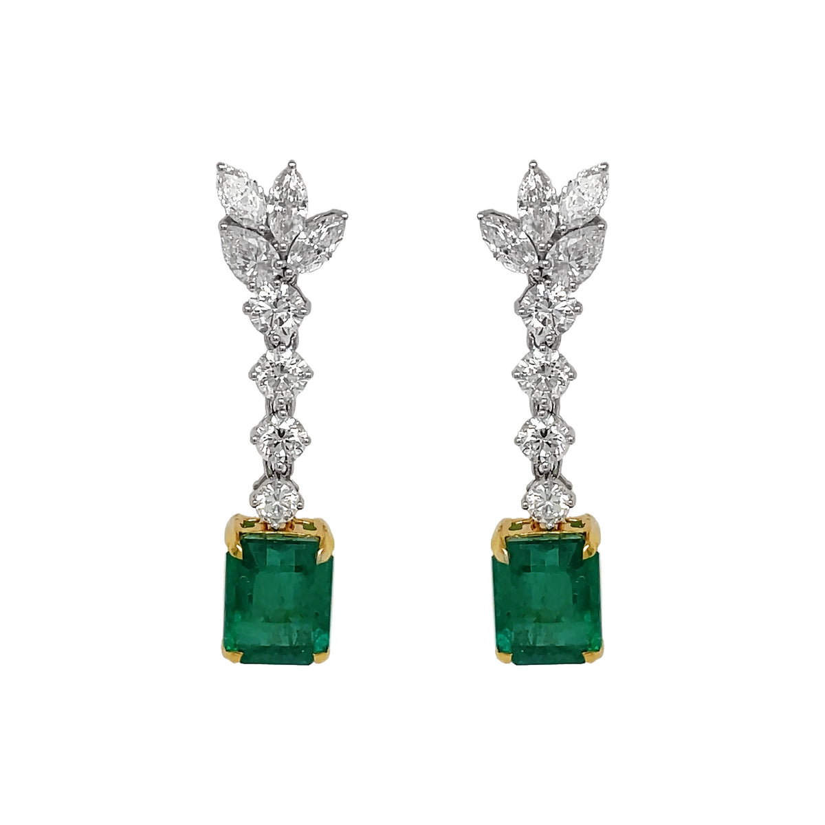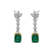 18kt White and Yellow Gold Diamond and Green Emerald Dangling Earrings