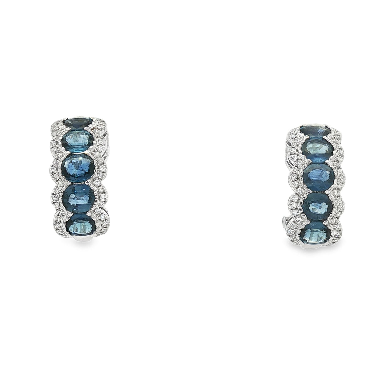 18kt White Gold Diamond And Blue Sapphire Earrings
