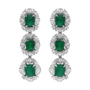 18Kt White Gold Diamond and Green Emerald Dangling Earrings