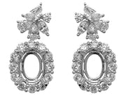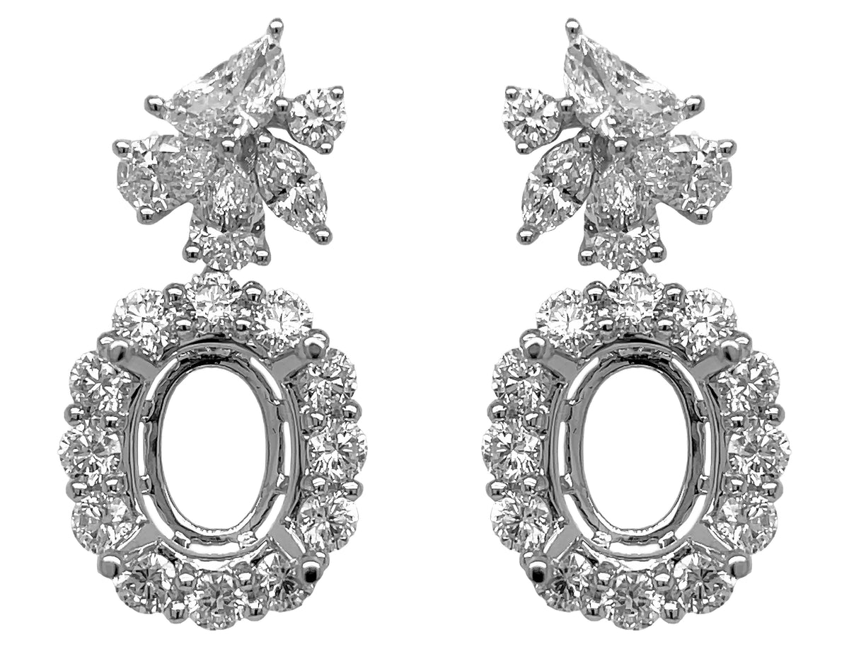 18kt white gold prong set pear, marquise, half-moon and round brilliant diamond dangling earring mounting for oval stone.