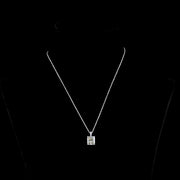 14kt white goldl 4 prong set GIA certified laboratory grown cut-cornered rectangular modified brilliant diamond pendant with micro prong set round brilliant diamond bail.