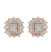 18kt rose gold prong set baguette and round brilliant diamond cluster earrings with french back.