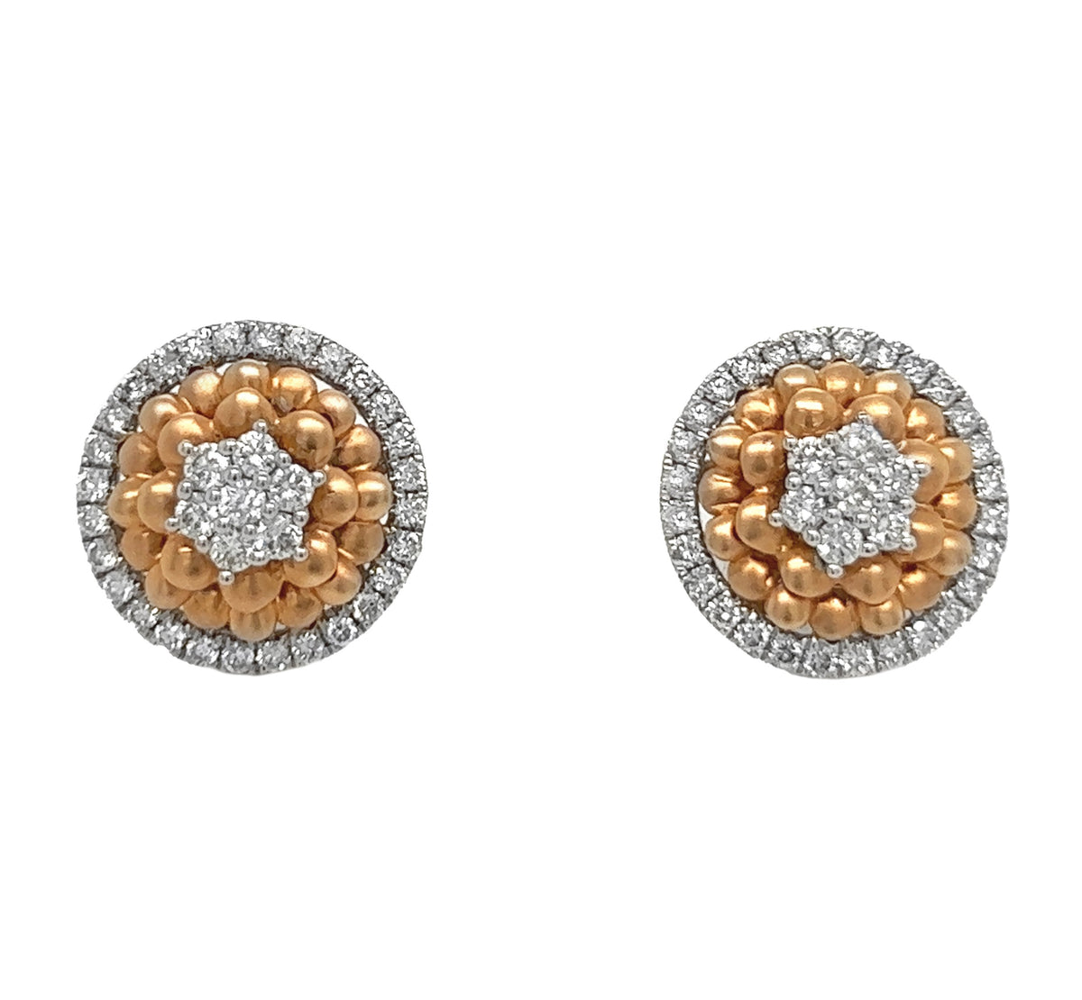 18kt rose and white gold micro prong set round brilliant diamond cluster earrings.