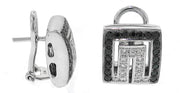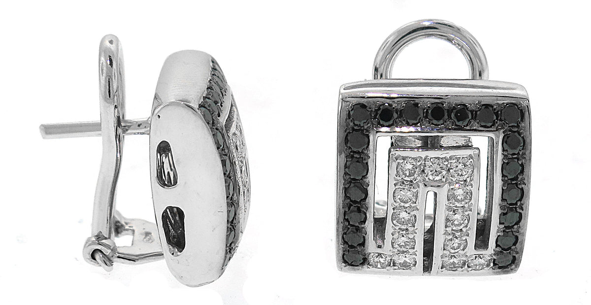 18kt white gold micrp pave set black and white round brilliant diamond earrings with french backs 38 black diamonds = 0.38ctw 26 round diamonds = 0.26ctw