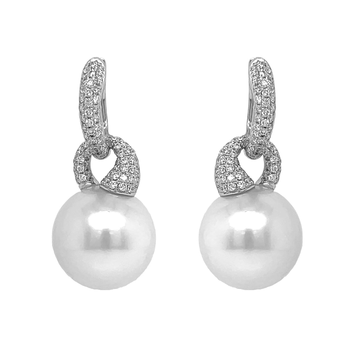 18kt White Gold Daimond and South Sea Pearl Dangling Earrings