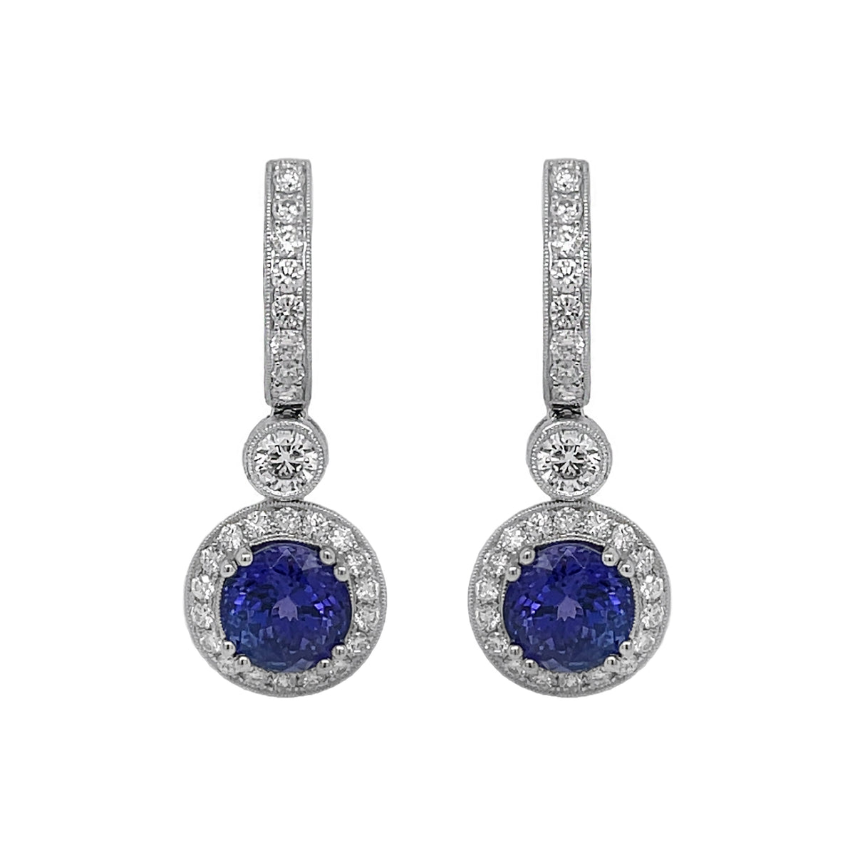 18kt White Gold Diamond and Blue Tanzanite Earrings