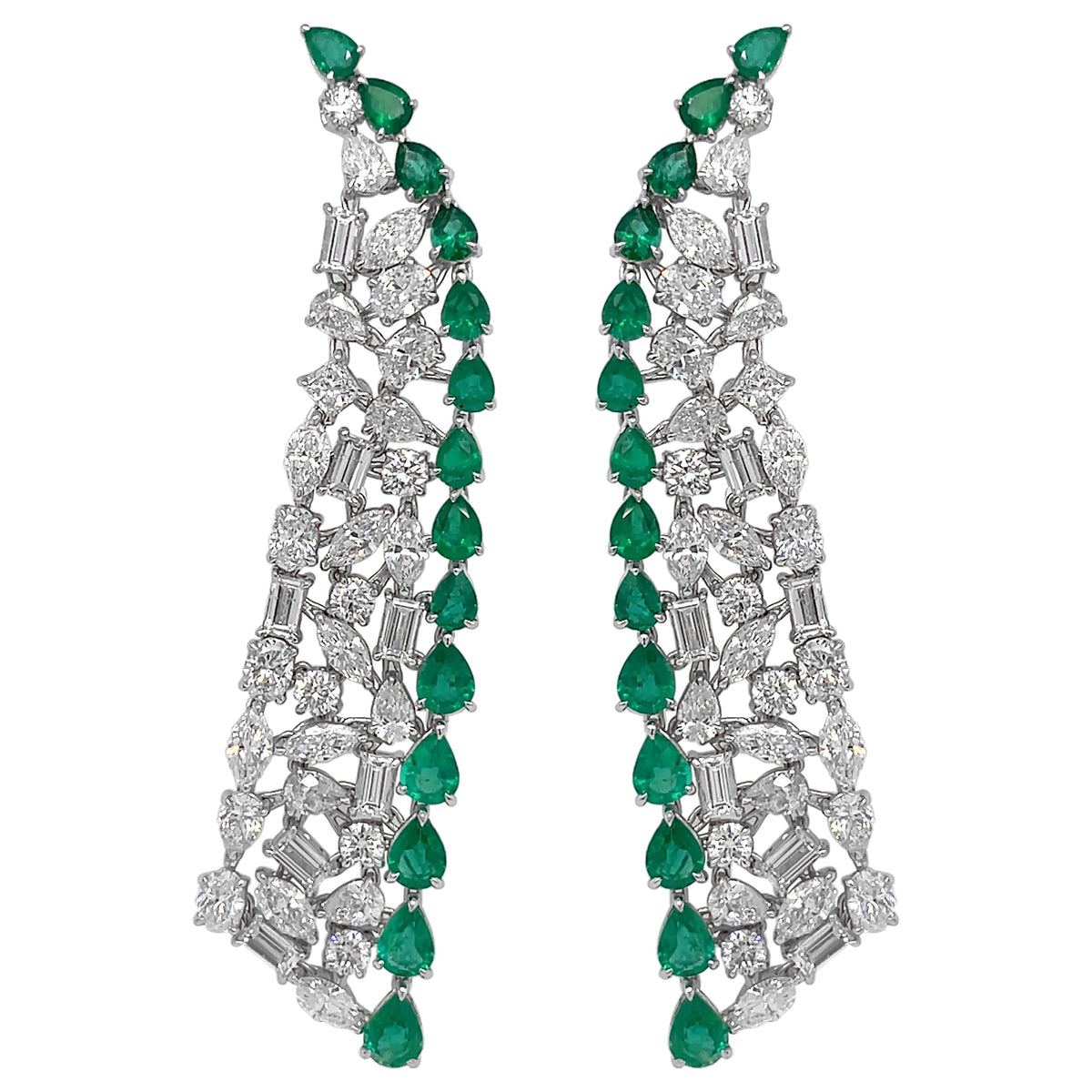 18kt White Gold Diamond and Emerald Earrings
