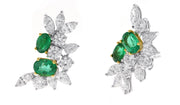 18kt white and yellow gold prong set oval emerald and prong set round, pear shape and marquise shape cluster pendant with bezel set round brilliant diamond, diamonds-by-the-inch chain.