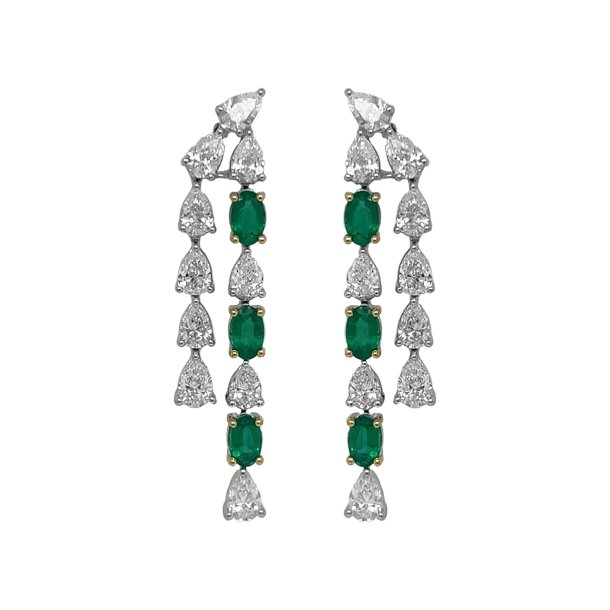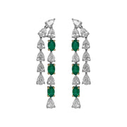 18kt White Gold Diamond and Green Emerald Dangling Earrings
