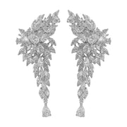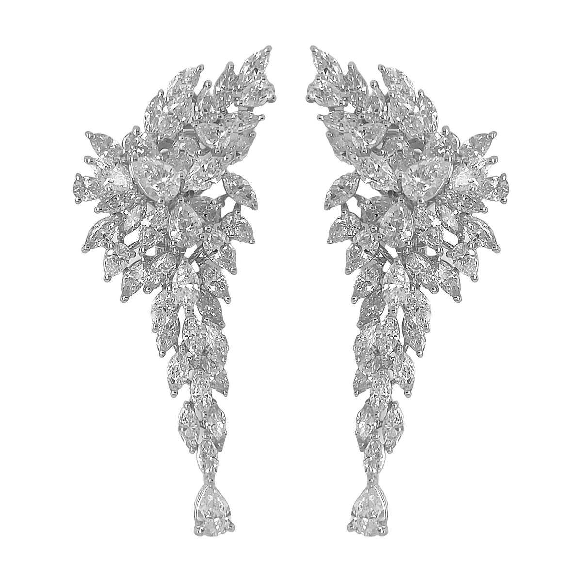18kt white gold prong set marquise and pear shaped diamond dangling earrings.