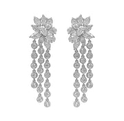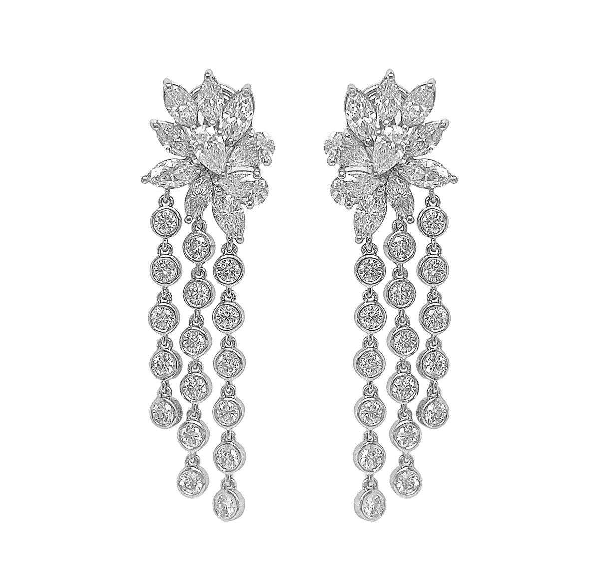 18kt white gold dangling earrings with prong set marquise pear shape and bezel set round brilliant diamonds