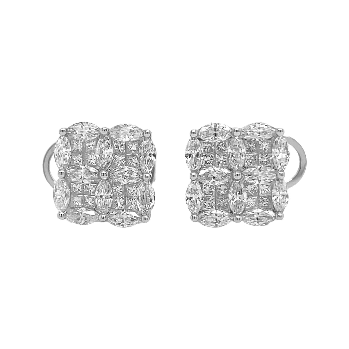 18kt white gold invisible set marquise and princess cut diamond multi-cluster earrings.