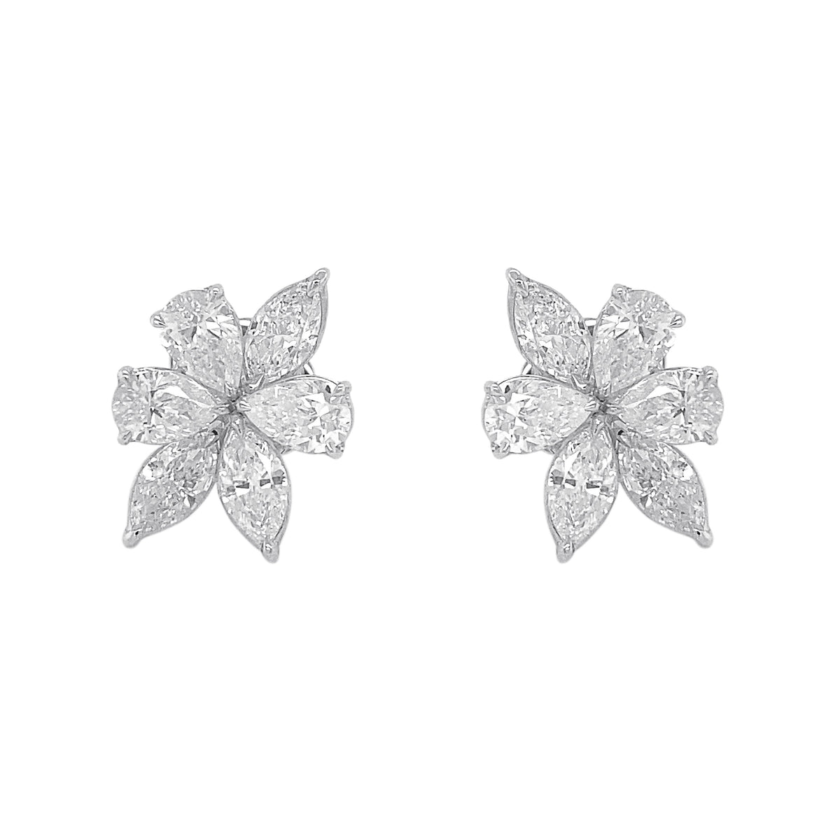 18kt white gold prong set pear and marquise cut diamond earring.