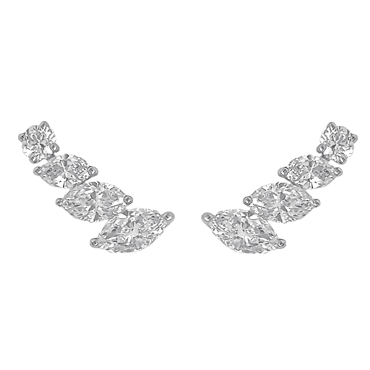 18kt white gold prong set marquise and round brilliant diamond crawlers earrings.