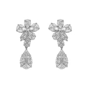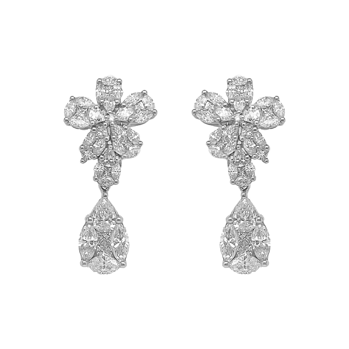 18kt white gold invisible set marquise, pear, princess and round brilliant diamond cluster earring.