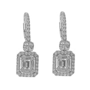 18kt white gold micro prong set baguette and round brilliant diamond dangling earring.