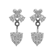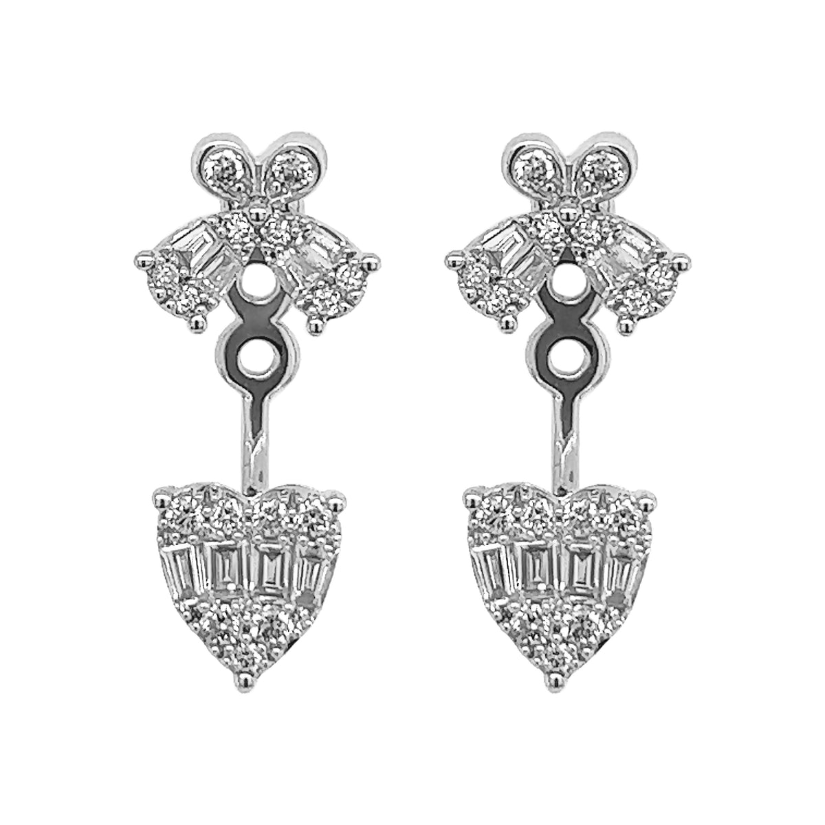 18kt white gold micro prong set round brilliant diamond dangling earrings.