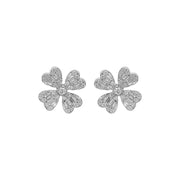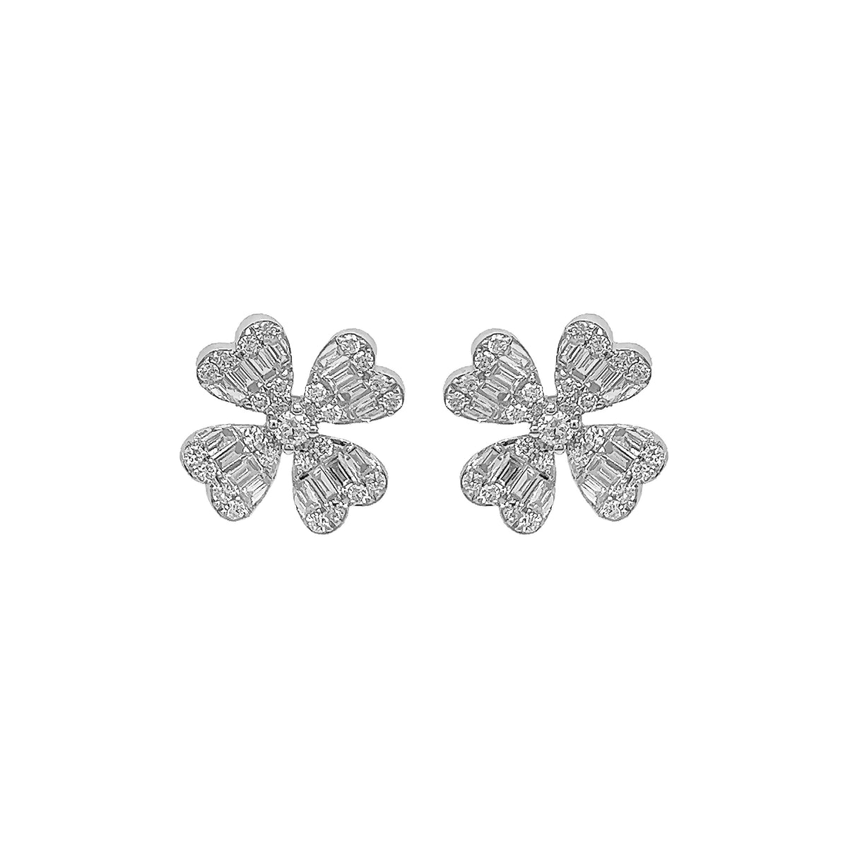 18kt white gold micro prong set baguette and round brilliant diamond flower earrings.