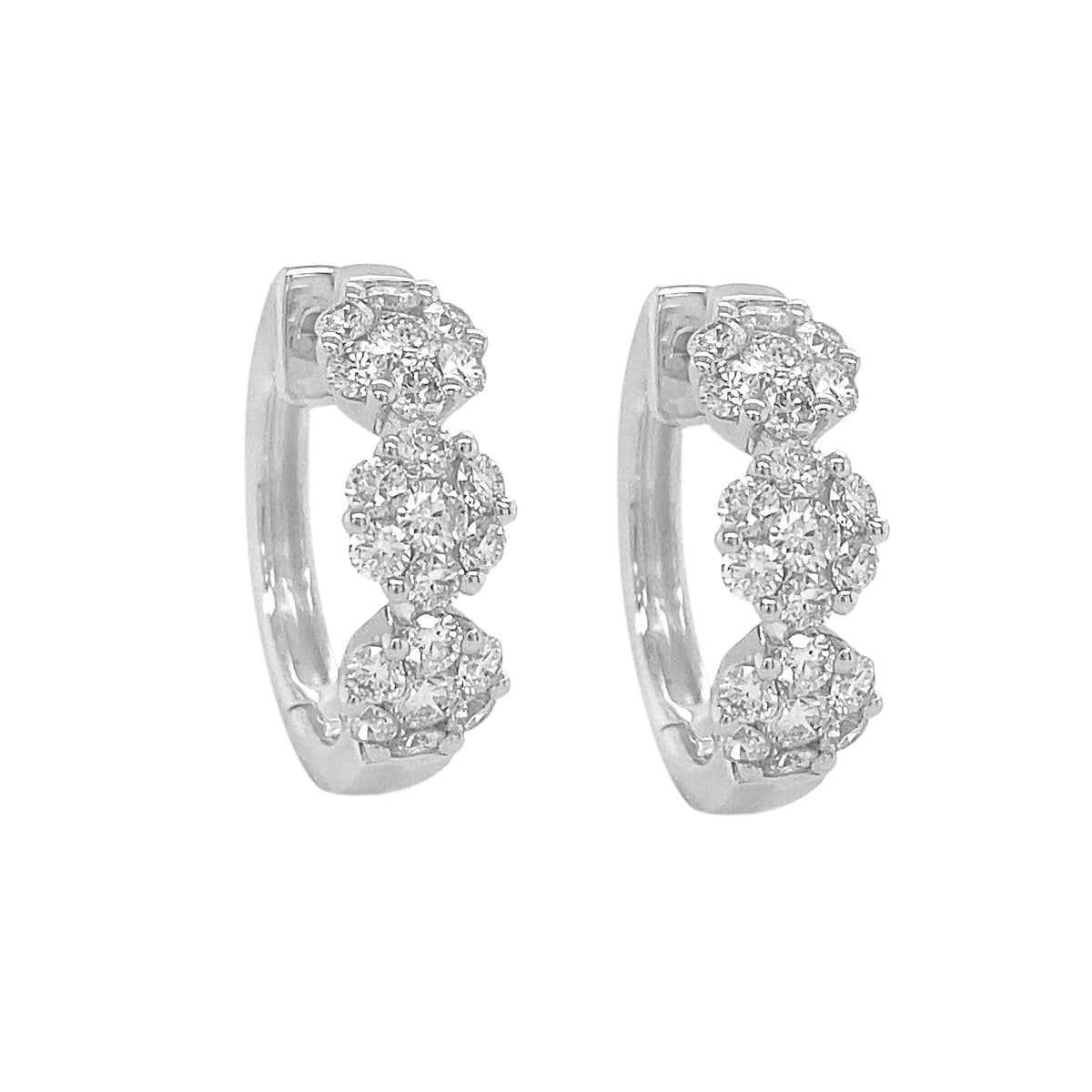 18kt white gold invisible set round brilliant diamond multi-cluster earring.
