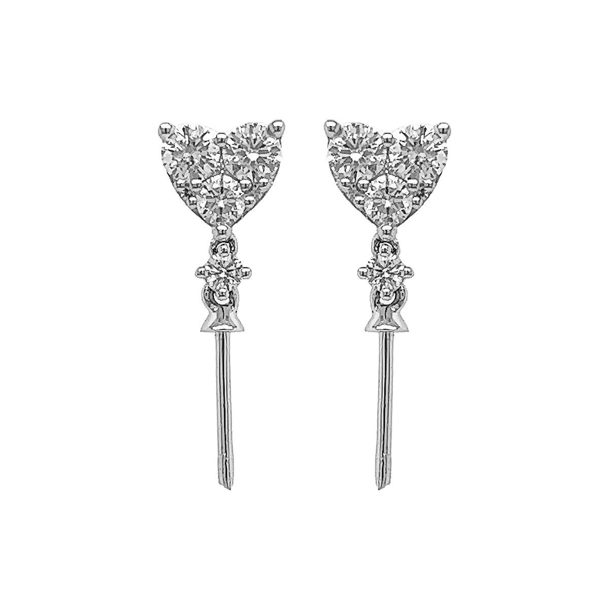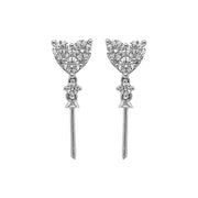 18kt white gold micro prong set round brilliant diamond dangling heart earrings.