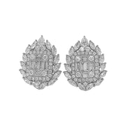 18kt white gold prong set baguette, marquise, pear and round brilliant diamond cluster earrings with french back.